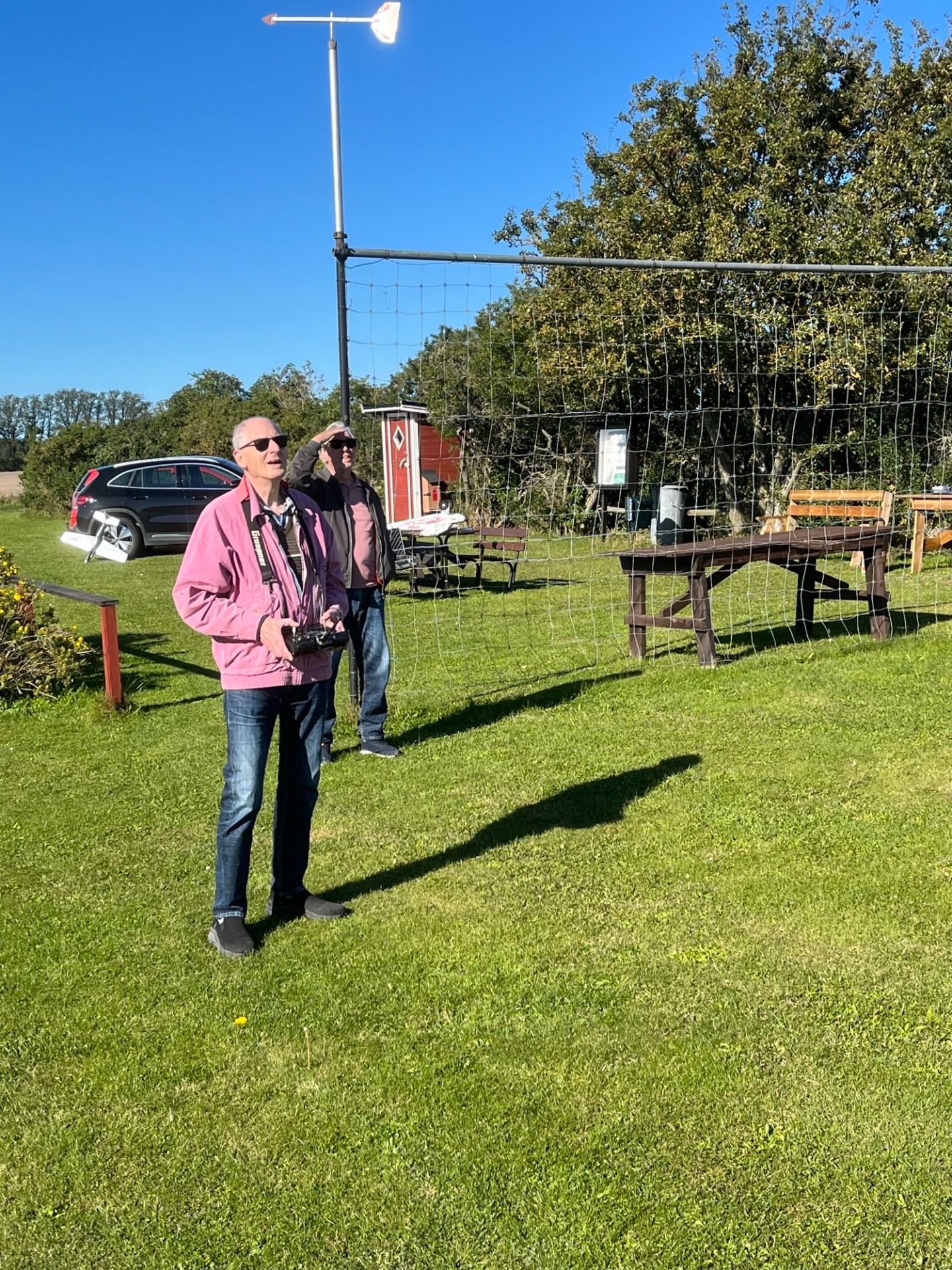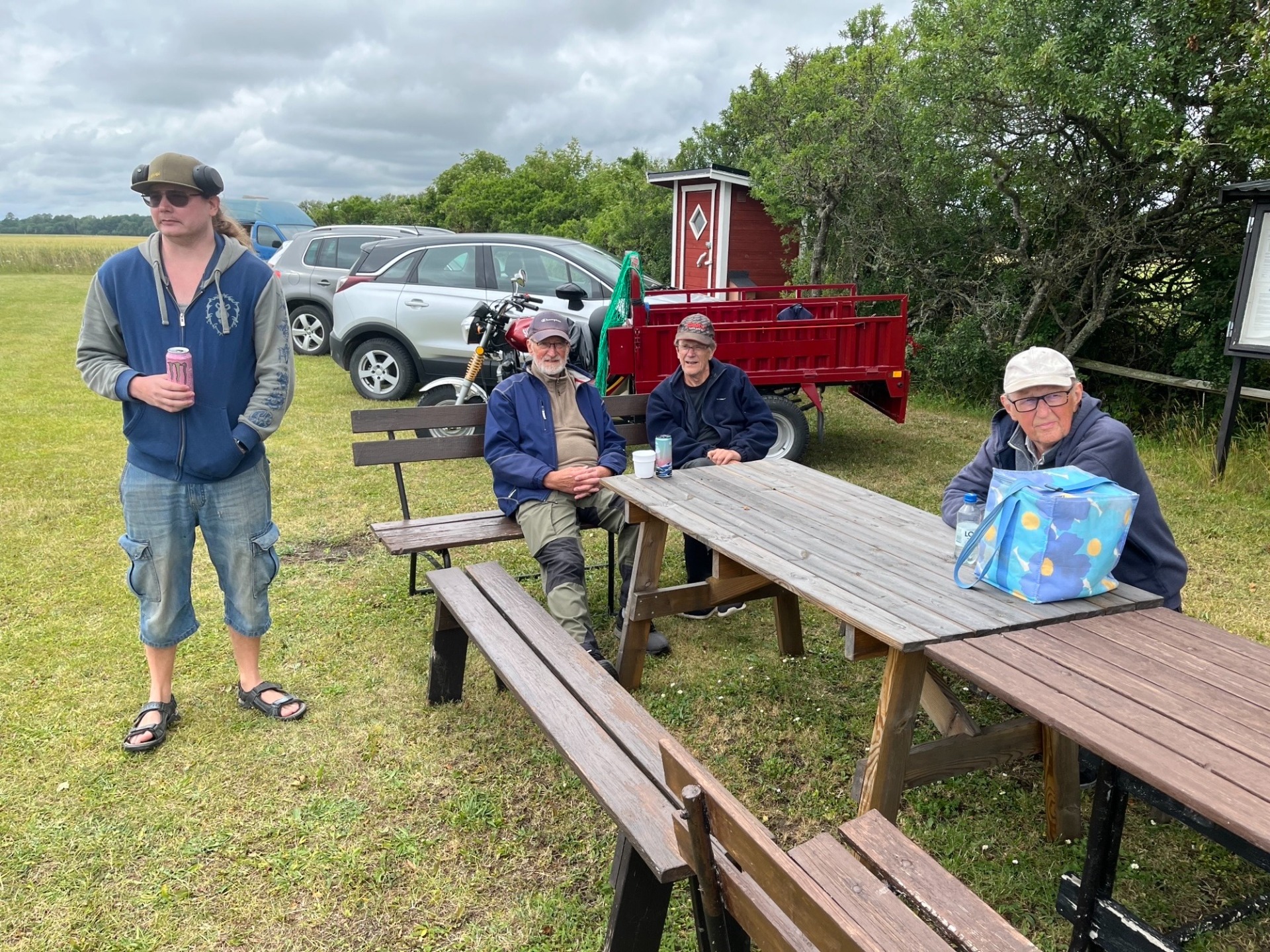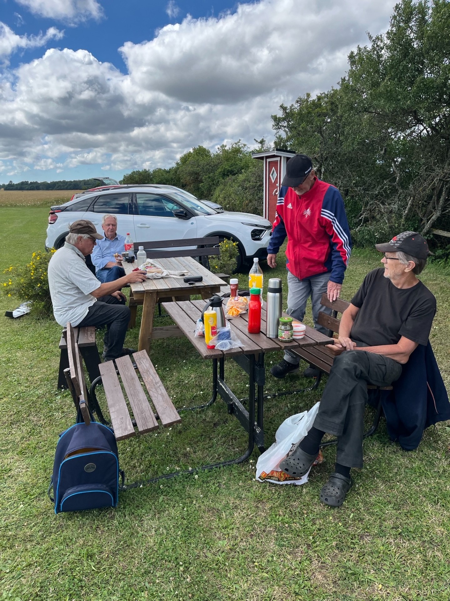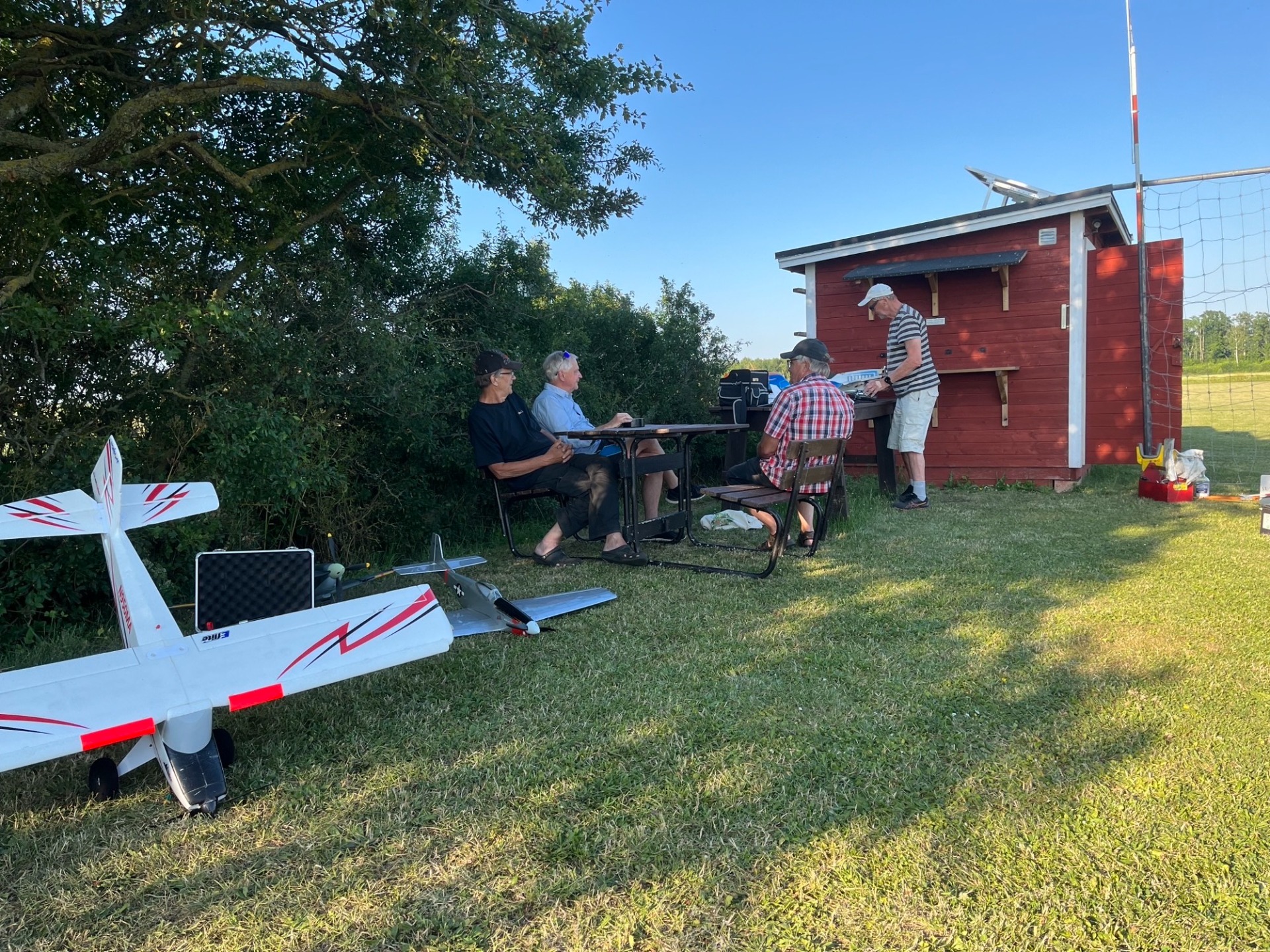 En paus i skuggan och helt säkert resonemang om Bosses elektroniska manicker som han flyger med. Bertil och Jörgen var också ute och flög. (27 juni foto Bertil)