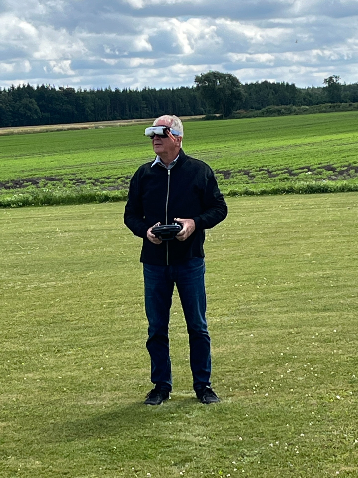 Sten-Erik och Nisse övar på att flyga "rote" där Sten-Erik följer Nisse med sin drönare. Tom tittar på. (foto Bertil, 26 september)