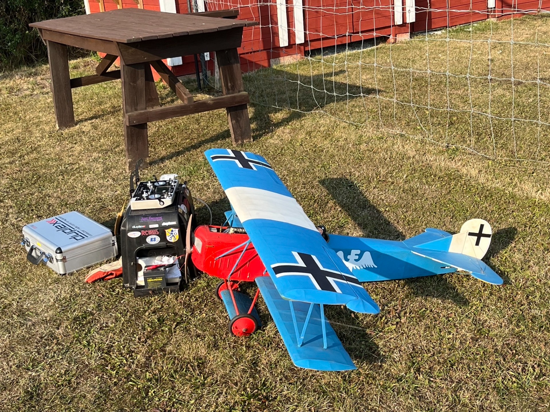 Det var vind nästan i banan när jag kom i kväll den 29 augusti och det blev en start med min Fokker DVII. Sedan vred vinden och blev mer byig. En start med min lilla Spririt blev det också.
