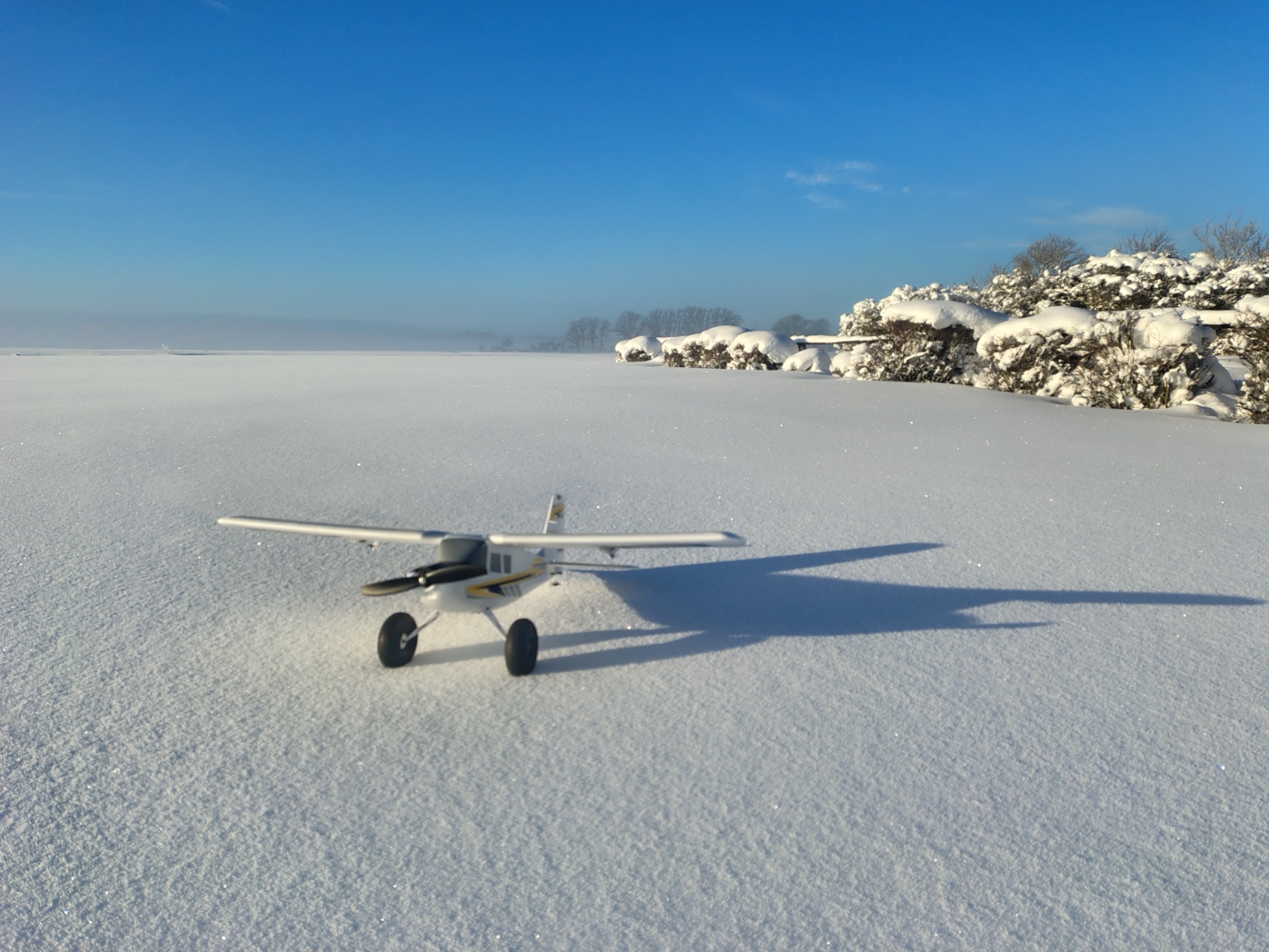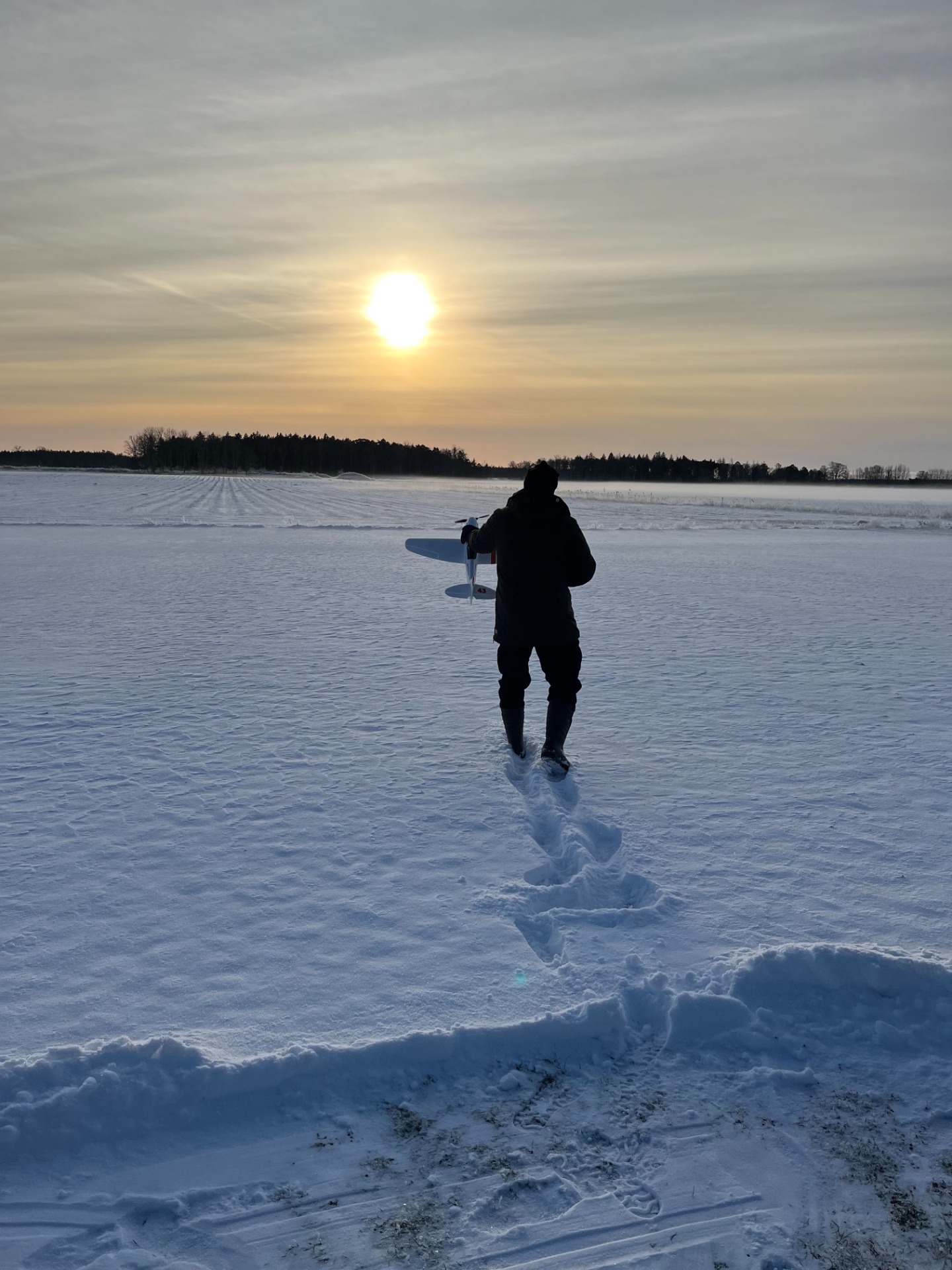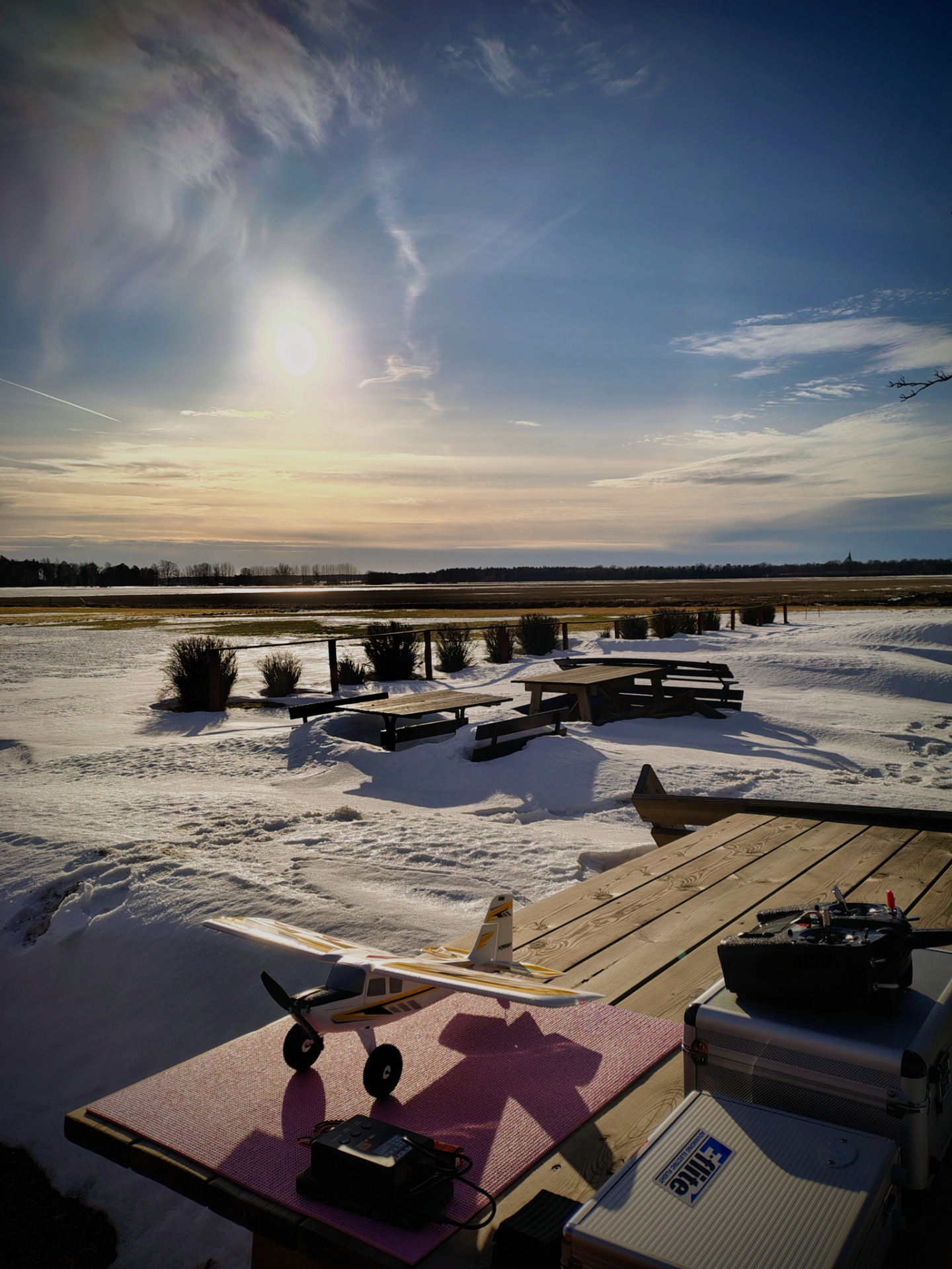 Örjan var ute på fältet och flög på söndag den 22 februari. Hård skare på fältet. (Foto Örjan V)