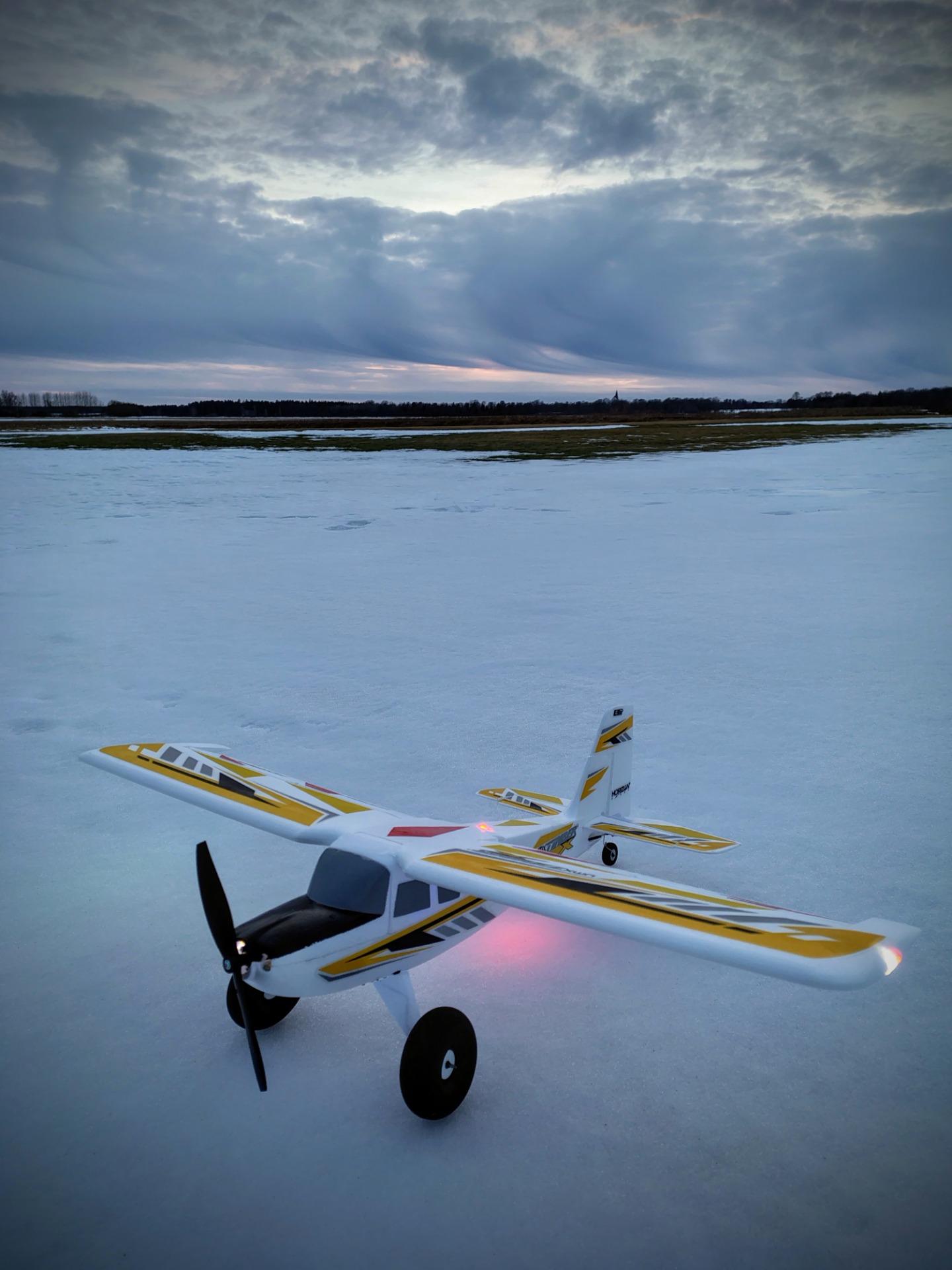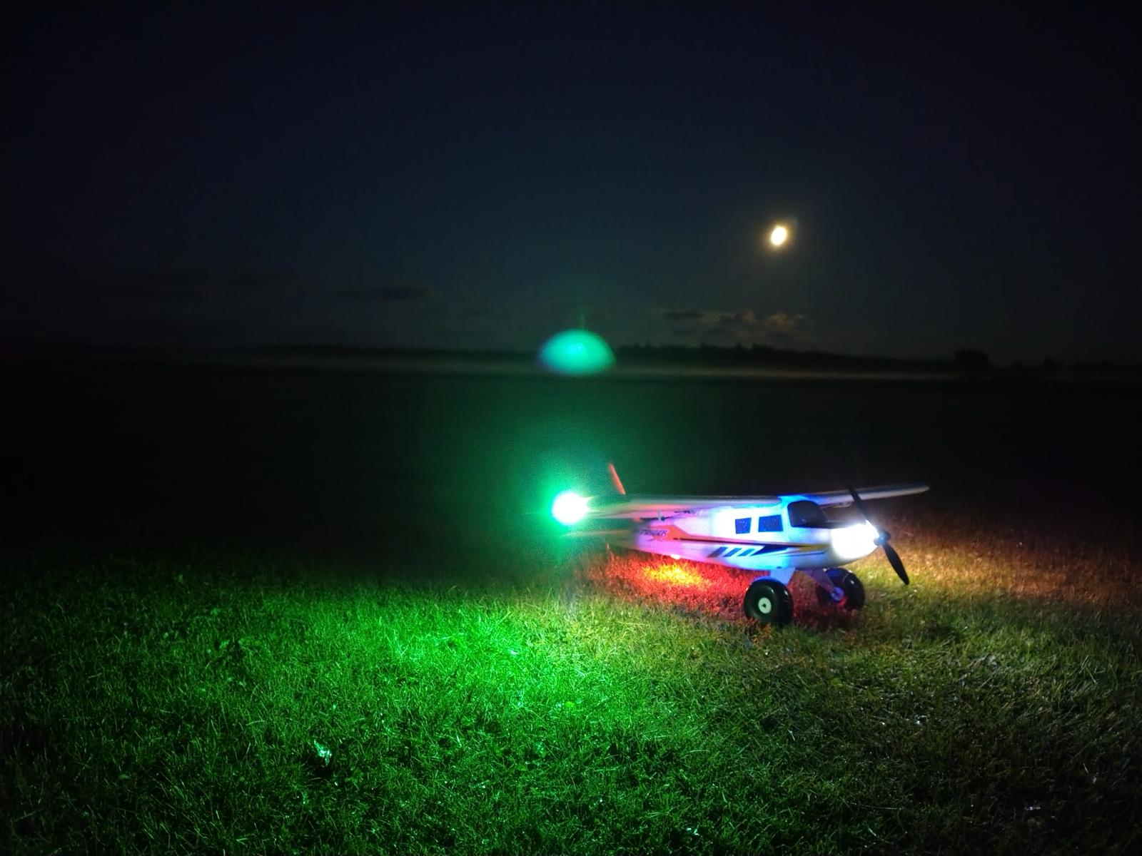 Örjan har varit ute och provat mörkerflygning. Endast fullmånen som ljuskälla men modellens belysning är kraftig och det gick bra. (foto Örjan V)