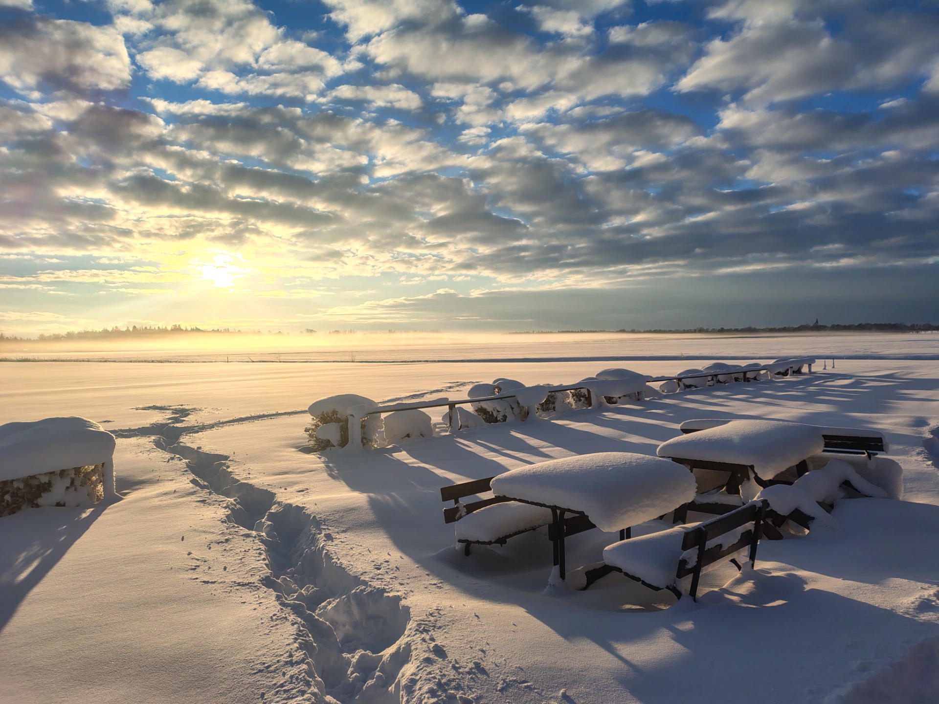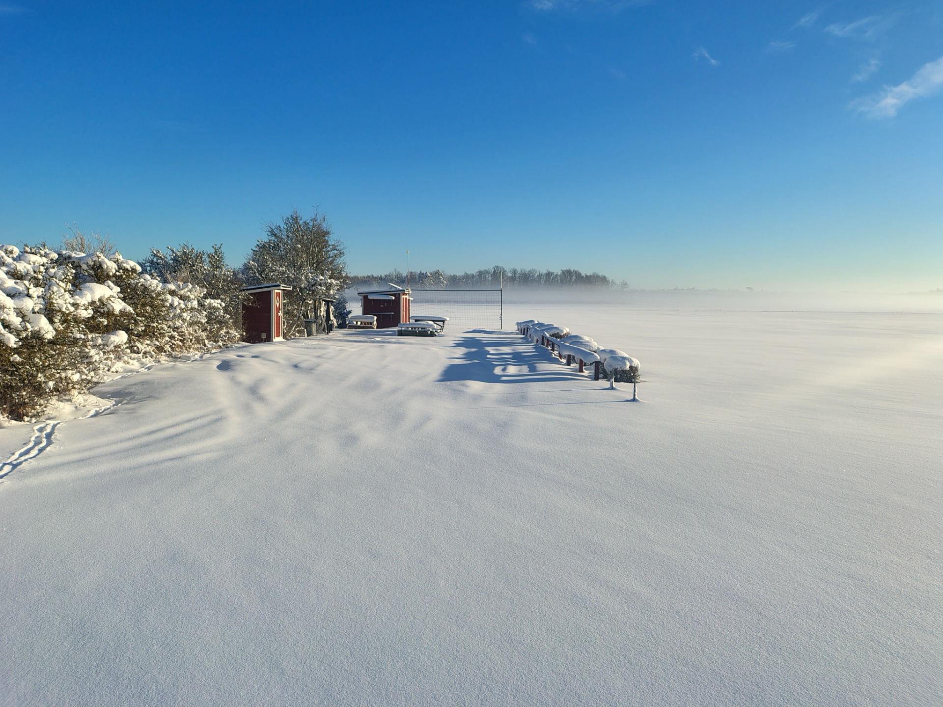 Fantastiskt fin bild med både sol och kölddimma på fältet. (foto Örian V)